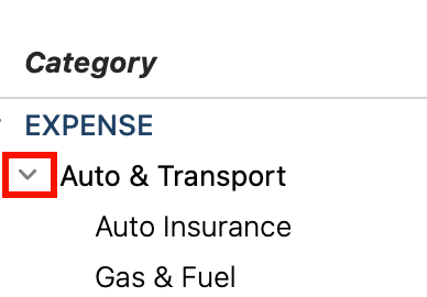 Collapse or expand a section of a report by selecting the arrow next to a row.