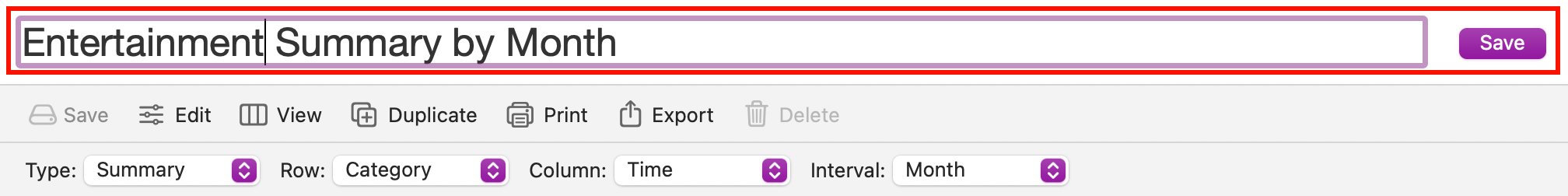 Use the Edit button (This is great for changing the Date Range or selecting individual items such as specific Categories, Tags, or Payees). See more about the Edit Report feature below.