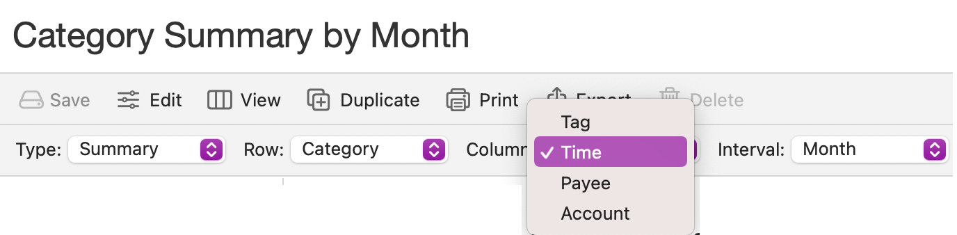 Select the report you want to use. For example, you may choose to start with Category Summary by Month.