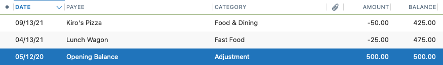 - Find the entry for the Opening Balance balance in your register. It should be the very earliest entry.