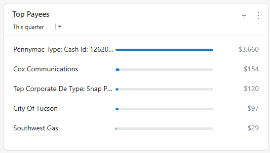Use case: You're trying to figure out why your checking account runs low each month. Categorized transactions reveal that food delivery and streaming services are consistently high. This gives you a target for cutbacks and improves your control over cash flow.