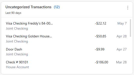 Use case: A major repair bill shows up as uncategorized. Until it’s assigned to Home Improvement, it won’t be included in your reports or budgets. Categorizing it gives you a true picture of your housing expenses.